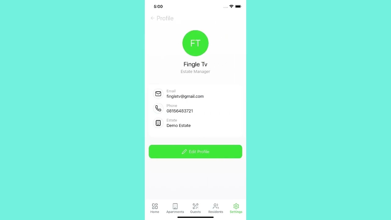 Comprehensive dashboard for estate managers to monitor operations, manage apartments, and resident activities.